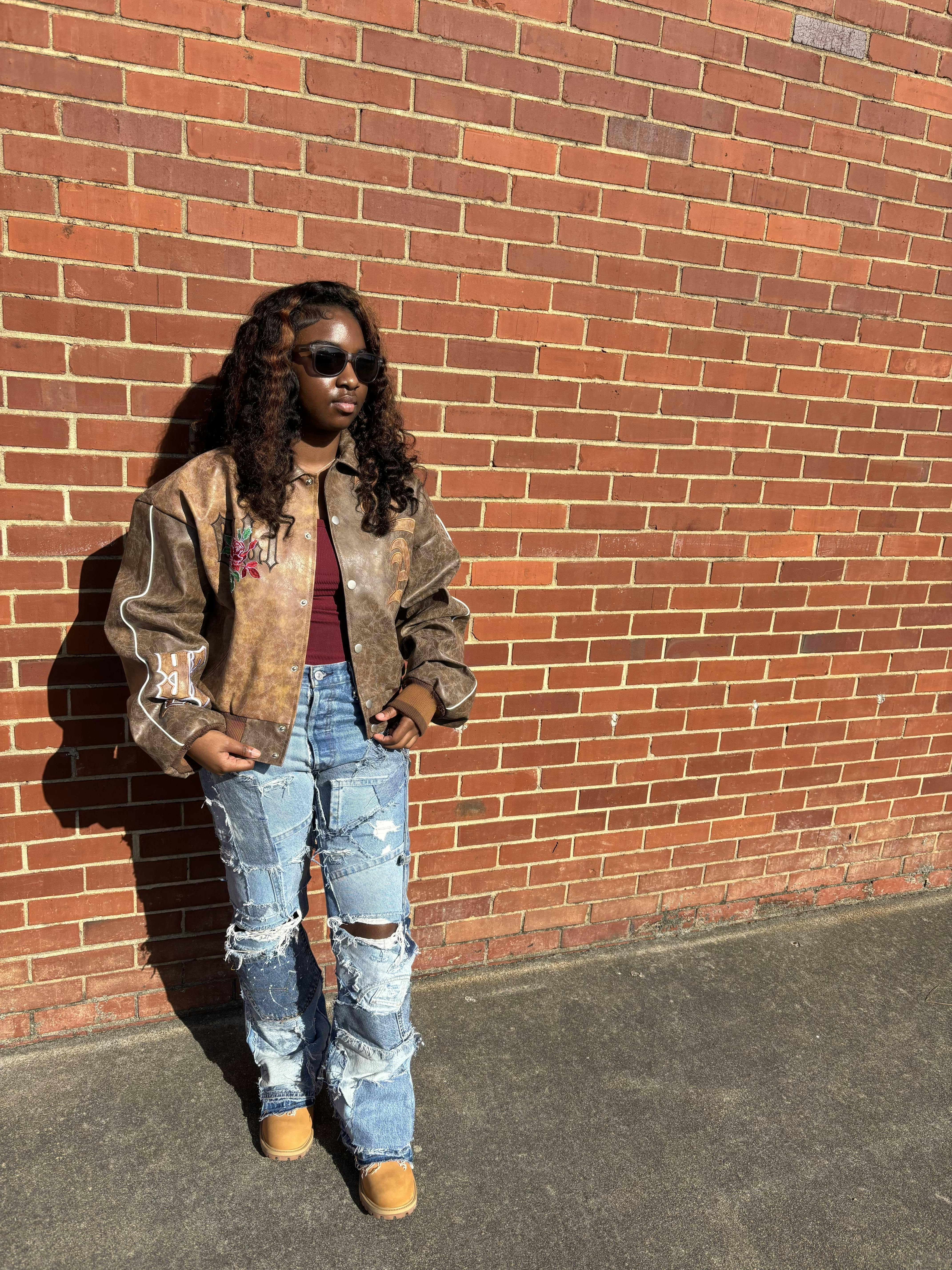 The Denim Bottle Cap Shorts turn classic cutoffs into an art piece. Handcrafted from premium upcycled denim and detailed with bold bottle cap embellishments, each pair carries raw creativity and unapologetic street-luxe energy. No two are alike — every pair is one-of-one.